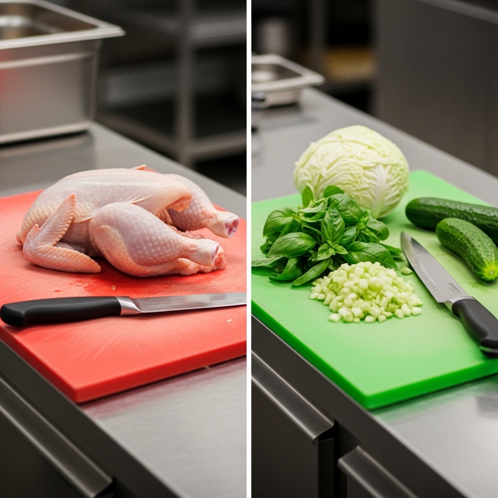 Dalam ekosistem kuliner profesional, tidak ada toleransi bagi kelalaian silang. Mengacu pada pedoman keamanan pangan otoritatif dari U.S. Food and Drug Administration (FDA) mengenai Safe Food Handling, salah satu dari empat langkah utama pencegahan penyakit bawaan makanan adalah "Separate" (Pisahkan). FDA secara spesifik melarang keras penggunaan talenan yang sama untuk sayuran segar/produk siap santap (ready-to-eat) dengan daging unggas mentah. Menginvestasikan Rp 50.000 untuk membeli talenan ekstra jauh lebih murah daripada menghadapi kebangkrutan karena bisnis Anda ditutup akibat kasus keracunan pelanggan.