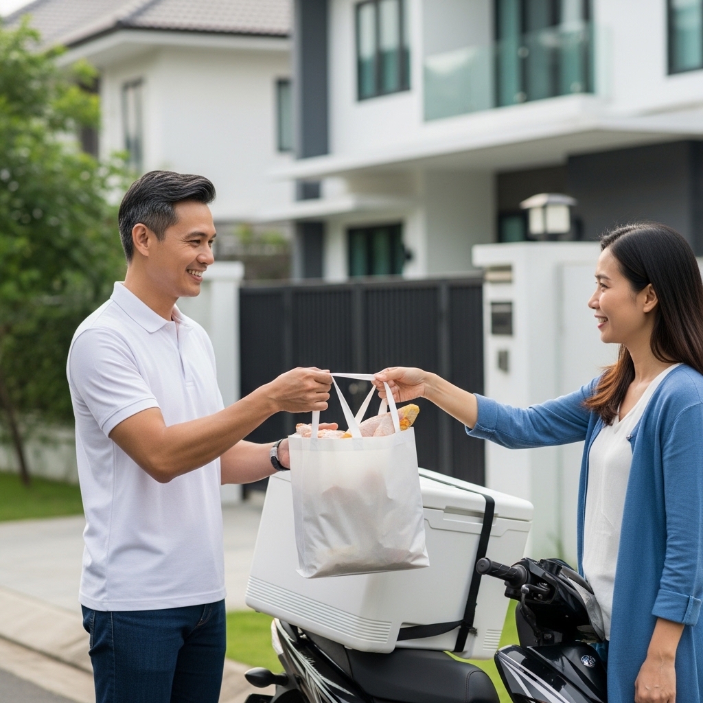 - Distribusi Silang (Cross-Docking) Pagi Hari: Saat armada logistik mengantarkan pesanan ke rumah Anda pada pagi hari (06:00 - 09:00 WIB), Anda tidak perlu menyimpannya di kulkas. Anda cukup memindahkannya ke dalam coolbox berisi es batu, lalu langsung mengantarkannya ke pelanggan Anda hari itu juga. Menjelang siang, stok Anda sudah habis dan uang tunai sudah di tangan.