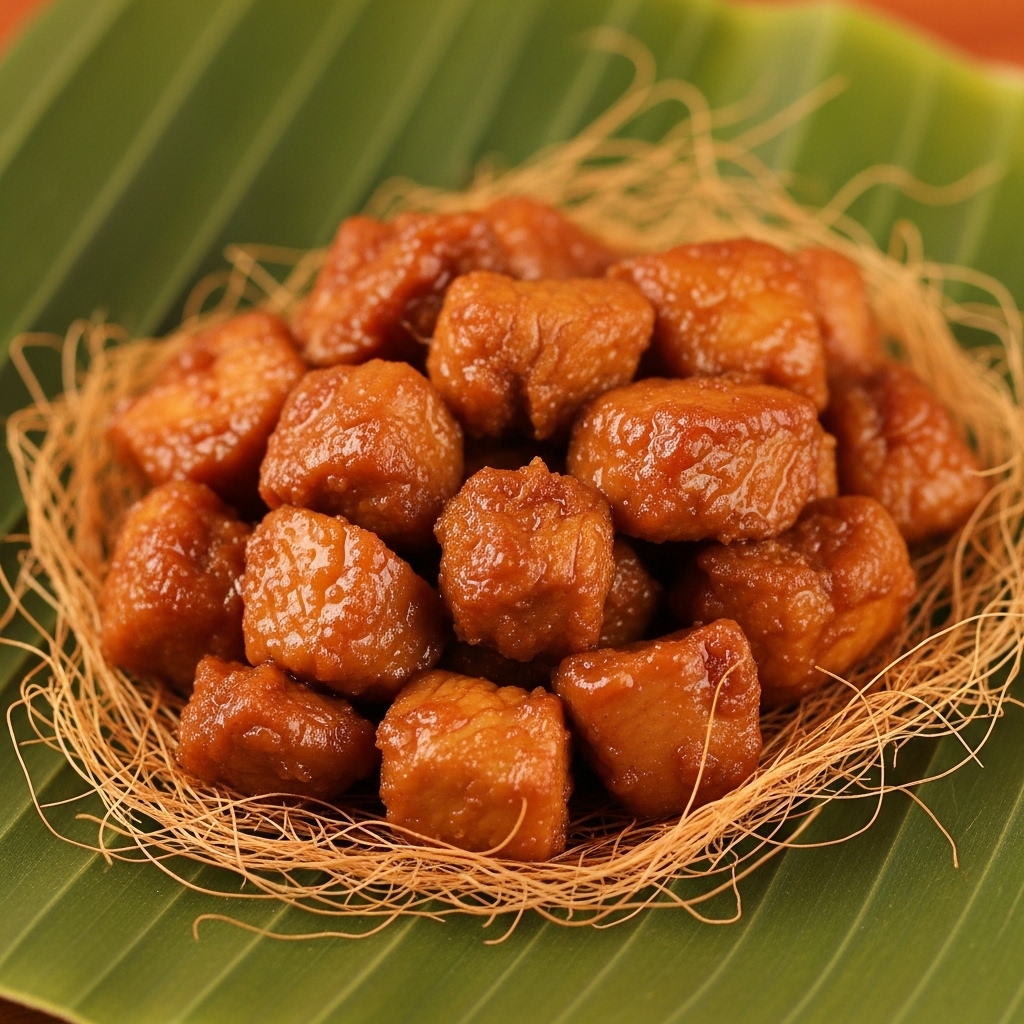 Semur ayam dadu Nasi Jamblang adalah hidangan lauk pendamping khas Cirebon berbalut kuah kecap karamel pekat yang berfungsi memberikan keseimbangan rasa manis gurih pada nasi beralas daun jati, di mana keutuhan tekstur potongannya sangat dipengaruhi oleh penggunaan karkas unggas segar dengan ikatan protein otot yang kuat.