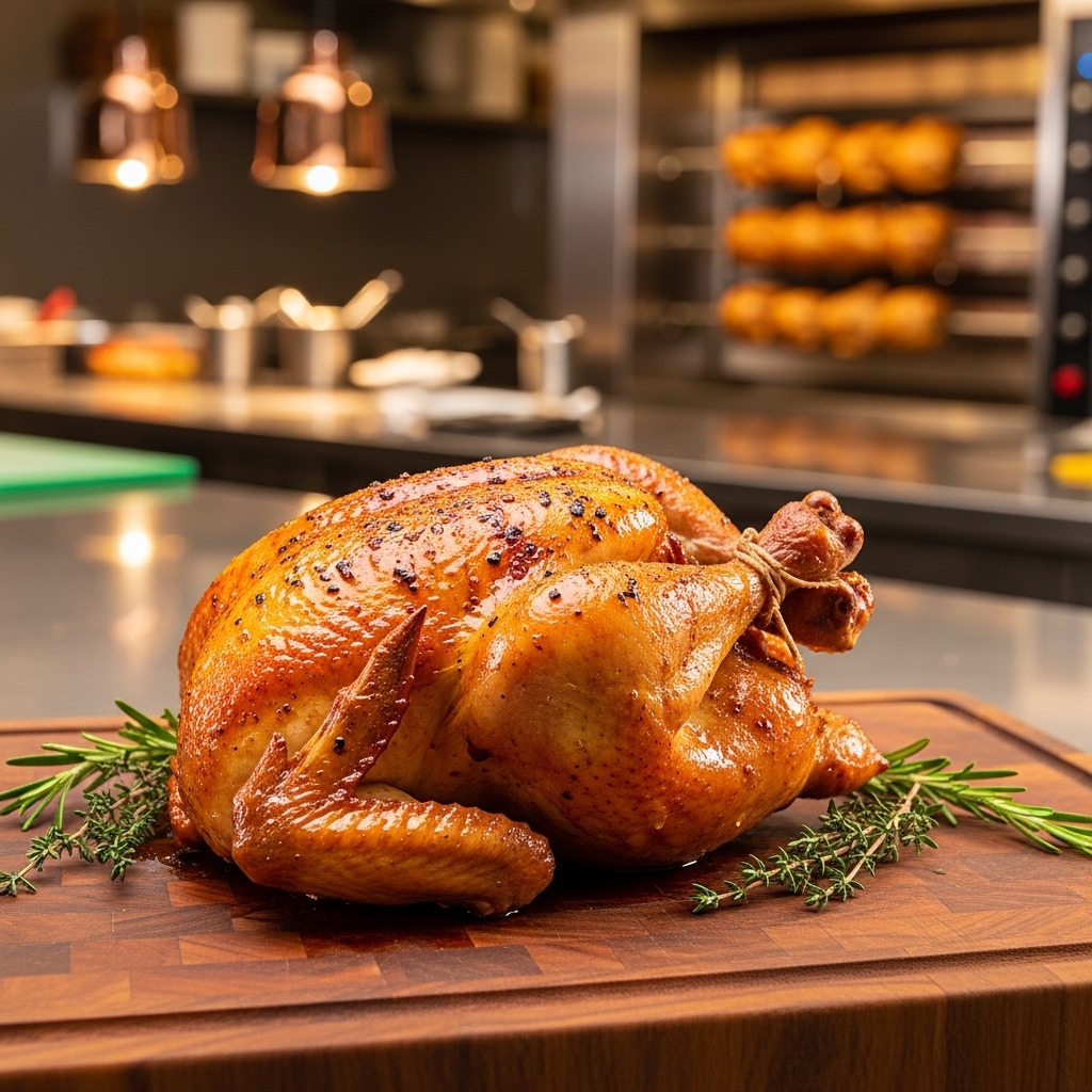 - Keunggulan Daging Segar: Proses roasting sangat menguras kelembapan daging. Ayam beku (frozen) yang dicairkan telah kehilangan banyak cairan intraseluler. Oleh karena itu, menggunakan ayam Fresh Daily Tricik yang dipotong pada pukul 02:00 - 04:00 WIB memastikan kelembapan alami (juiciness) daging tetap terkunci saat masuk ke dalam oven.
