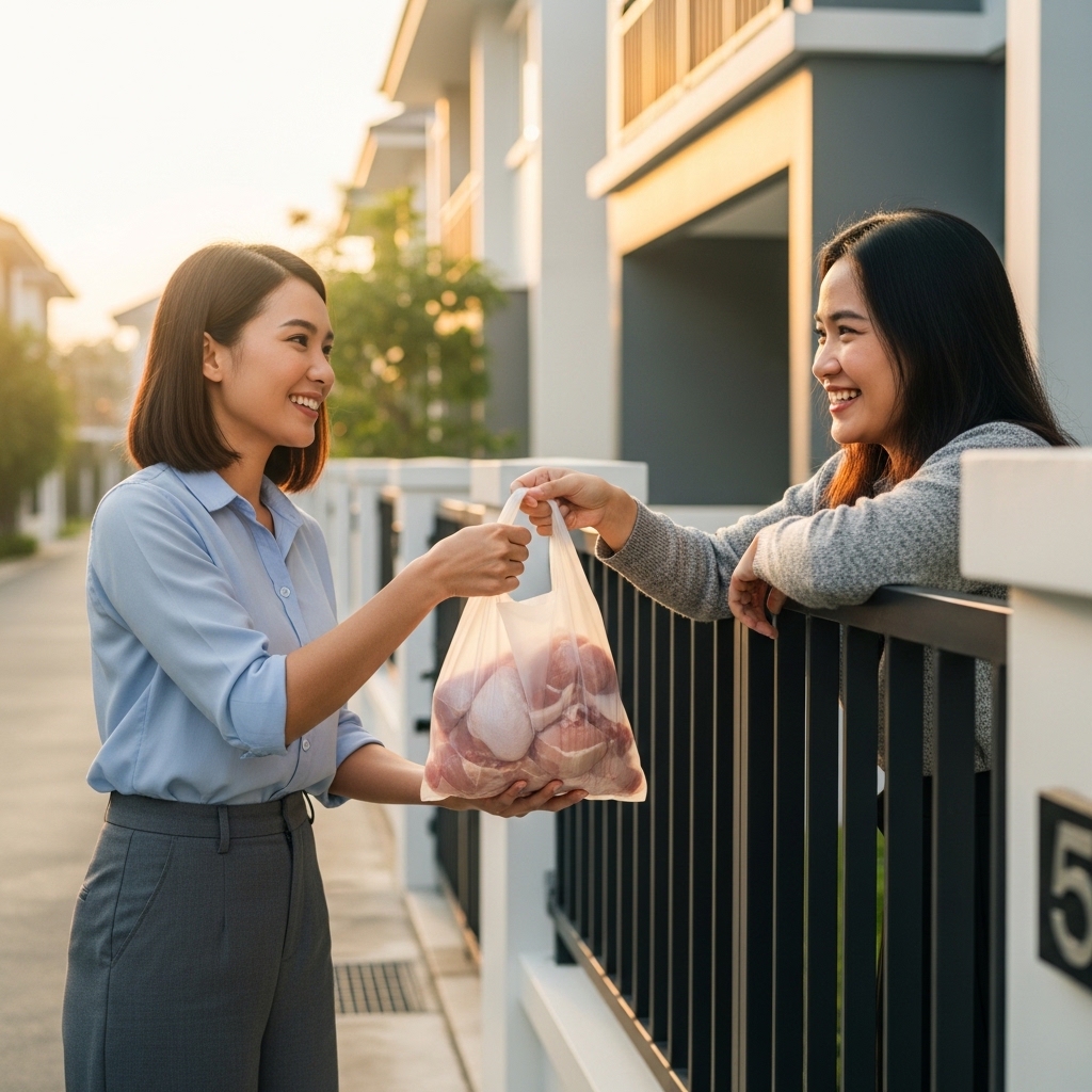 Terapkan alur operasional ini: Tutup buku PO ( Pre-Order) pesanan warga di grup WhatsApp komplek pada malam hari (H-1). Kami mengeksekusi pemotongan ayam murni dari pukul 02:00 hingga 04:00 WIB di RPH Cengkareng. Tepat pada pukul 06:00 - 09:00 WIB, armada kami menyerahkan karkas segar tersebut tepat di teras rumah Anda. Segera bagikan kantong-kantong pesanan tersebut kepada tetangga yang telah memesan (sebelum durasi dua jam berlalu). Daging ayam akan terasa kesat, wangi, dan tidak menyusut saat dimasak, memastikan ibu-ibu tetangga Anda selalu berlangganan setiap minggunya. Lipatgandakan penghasilan tambahan Anda dari rumah; kumpulkan pesanan minimal 50kg dan rasakan keuntungan fasilitas bebas ongkos kirim dalam radius 10km!