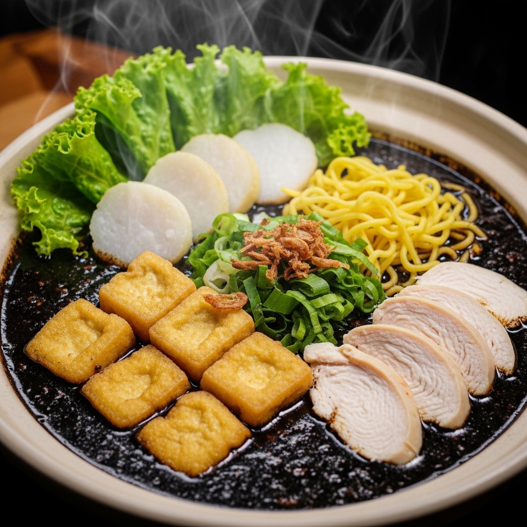 - Optimalisasi HPP (Zero Waste): Membeli 1 ekor karkas utuh dari Tricik memberikan manfaat ganda. Pisahkan daging dada dan pahanya untuk direbus, lalu diiris sebagai topping pengganti irisan daging sapi. Sisanya, yakni tulang punggung (rongkong), tulang leher, dan kulit, direbus perlahan bersama bumbu rempah. Sari pati tulang ayam ini cukup kuat dan kental untuk dijadikan kanvas bagi bumbu hitam petis udang tanpa membuat modal Anda membengkak.