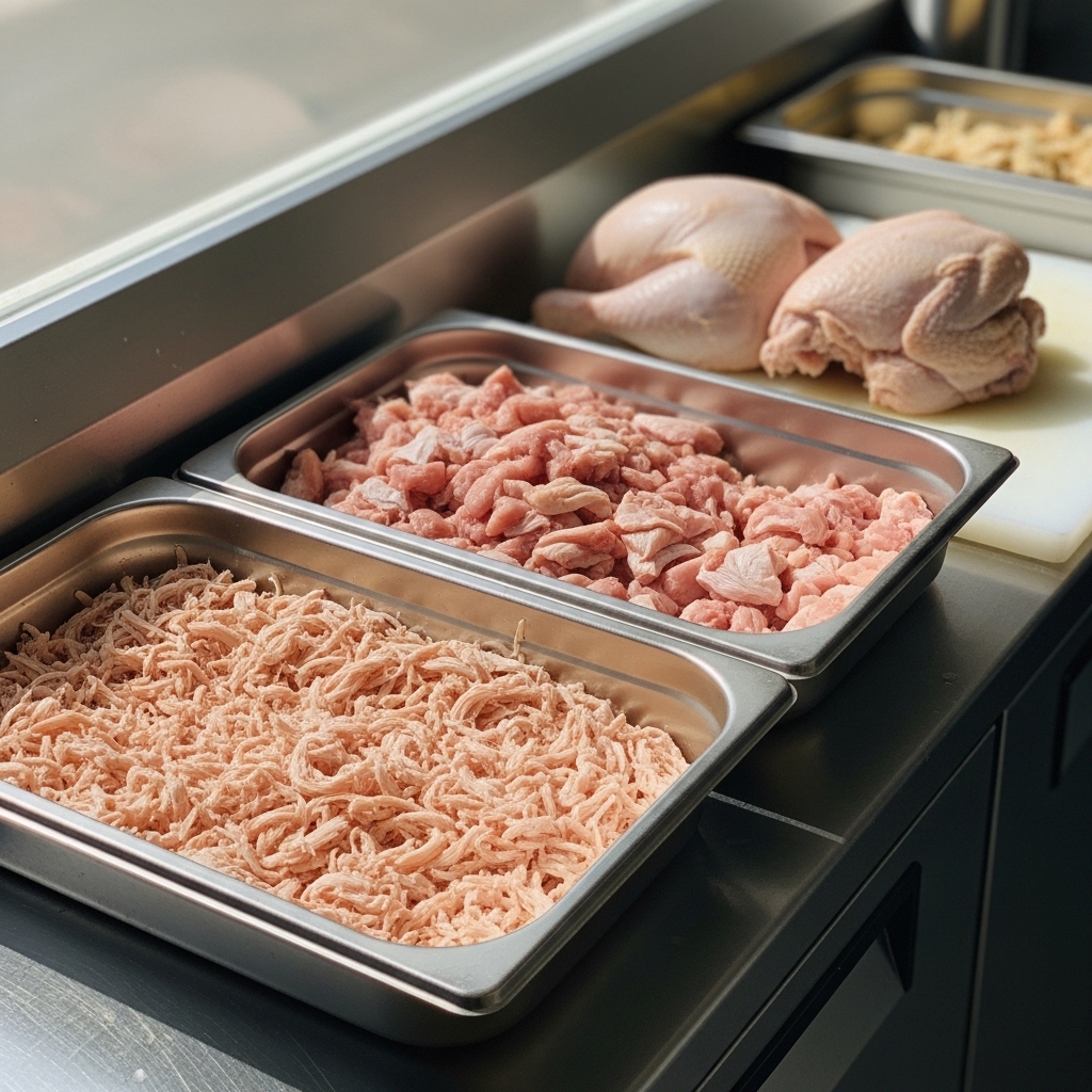 - Integritas Serat untuk Suwiran & Cincangan: Daging ayam yang diolah menjadi isian martabak atau topping mi harus kokoh. Ayam beku dari pasar akan hancur menjadi bubur jika dicincang setelah direbus karena selnya rusak oleh es. Karkas segar Tricik mempertahankan elastisitas protein miosin, sehingga saat direbus dan disuwir, seratnya memanjang cantik (tidak ambyar), dan saat dicincang kasar, tekstur dagingnya tetap terasa membal saat dikunyah.