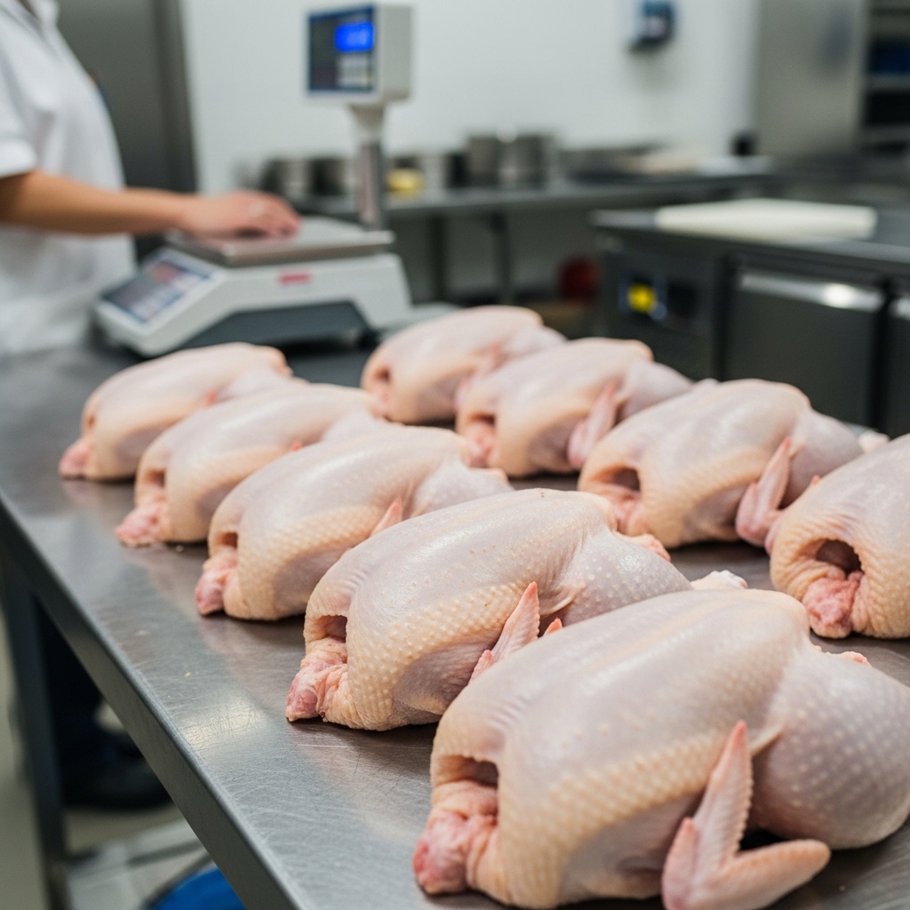 Jaga standar porsi franchise Anda dengan grading ayam karkas presisi dari Tricik. Ukuran seragam 0.8kg-1.5kg jaga HPP dan kepuasan pelanggan. Pesan B2B sekarang!