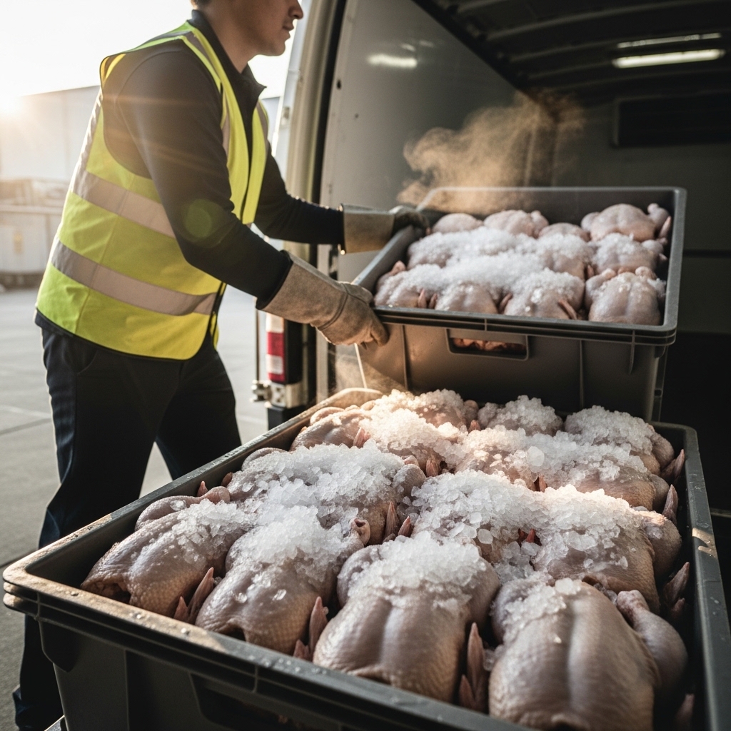 Mengapa ayam Tricik bebas bau dan tahan lama? Pelajari manajemen rantai dingin (cold chain) dari potong dini hari hingga kirim pagi di Cengkareng untuk cegah bakteri.