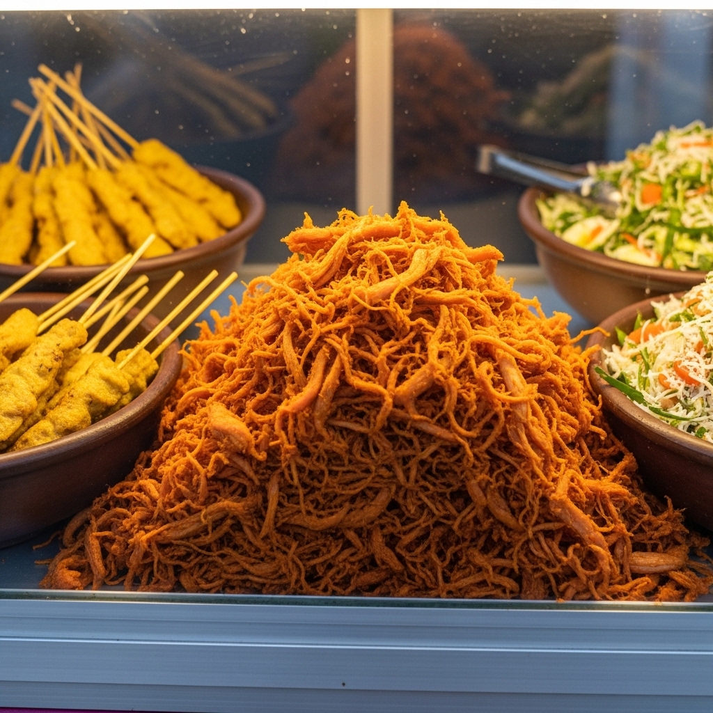 Suwiran ayam betutu Nasi Campur Bali Anda cepat basi di etalase? Gunakan karkas segar Tricik untuk mengunci jus alami agar lauk kering dan awet seharian!